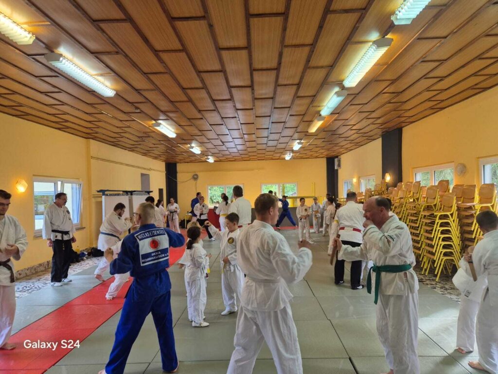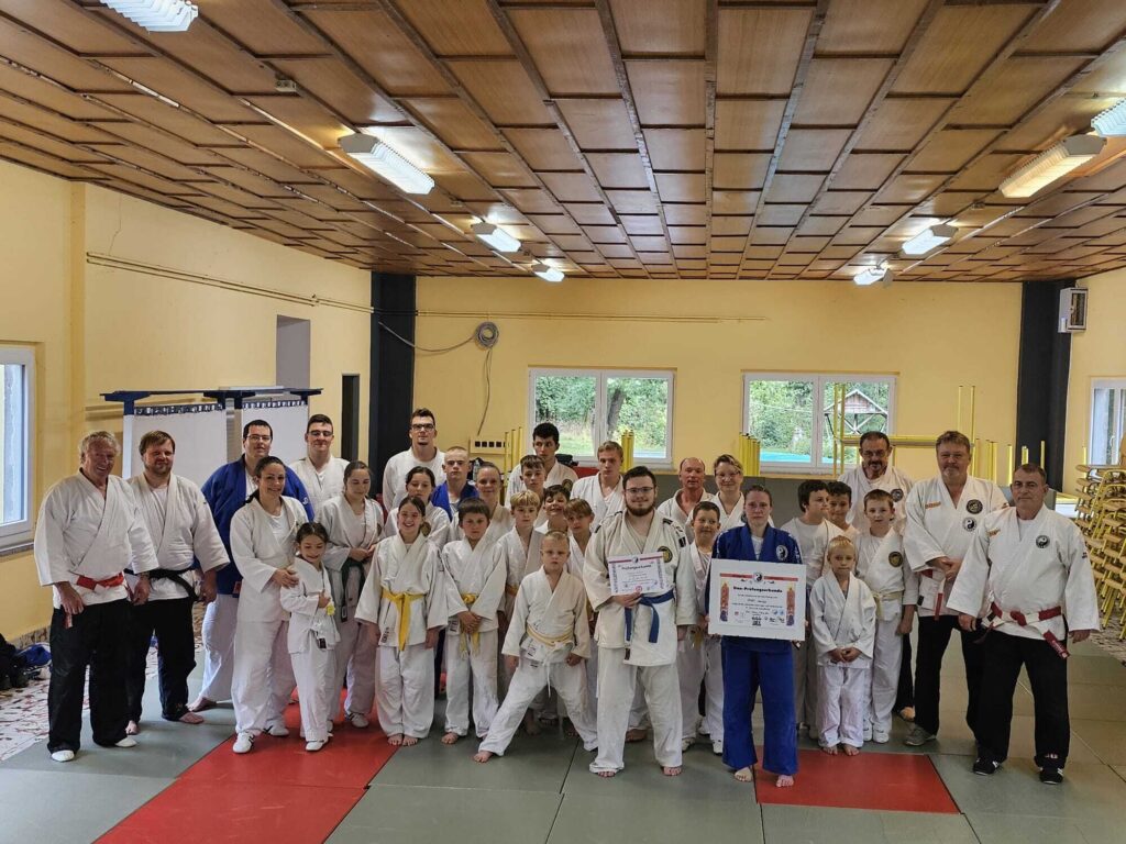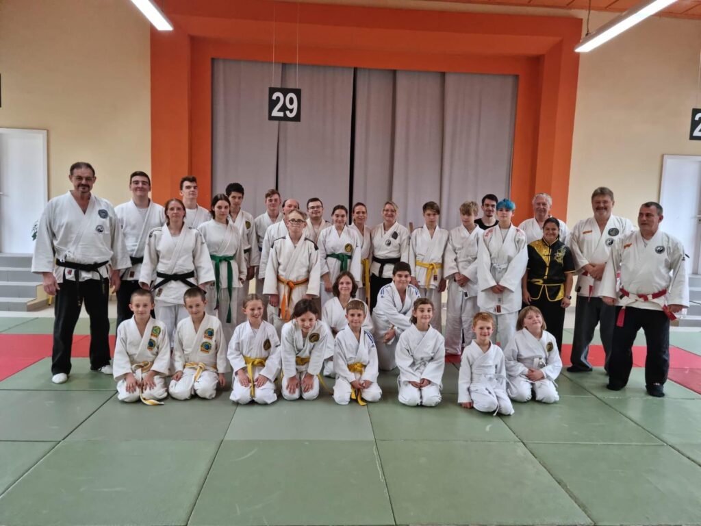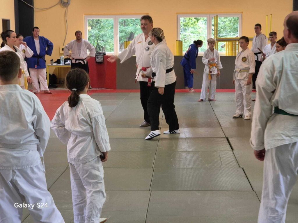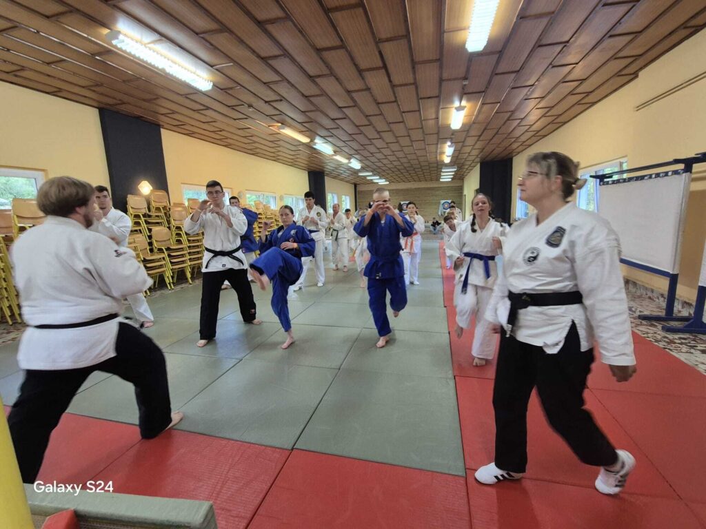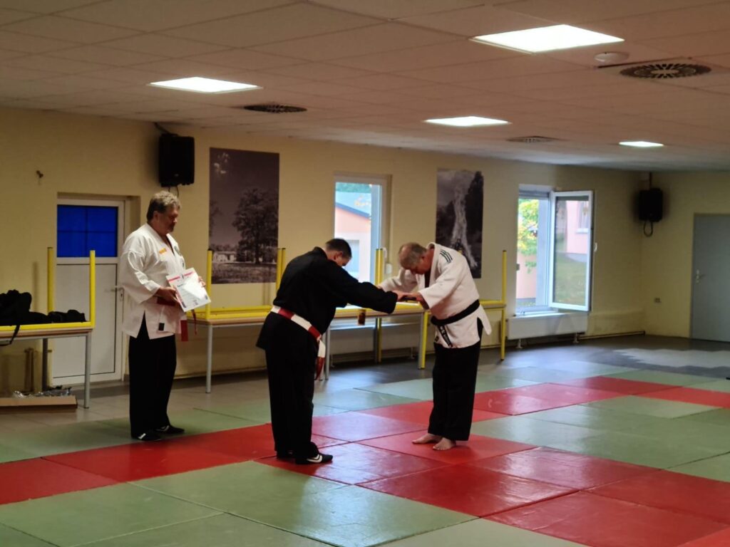 Am Freitagnachmittag starteten wir den ersten Trainingsabschnitt mit realistischer Selbstverteidigung mit Werner Bank aus Artern. Es wurden verschiedene Angriffsvarianten mit und ohne Waffen vorgestellt. Im Anschluss konnten 2 Teilnehmer die Prüfung zum nächsthöheren Gürtel ablegen, Benjamin Weiland legte mit Bravur den braunen Gürtel und Steffi Georgy konnte mit guten bis sehr guten Leistungen den 3. Dan (Meistergürtel) bestehen.