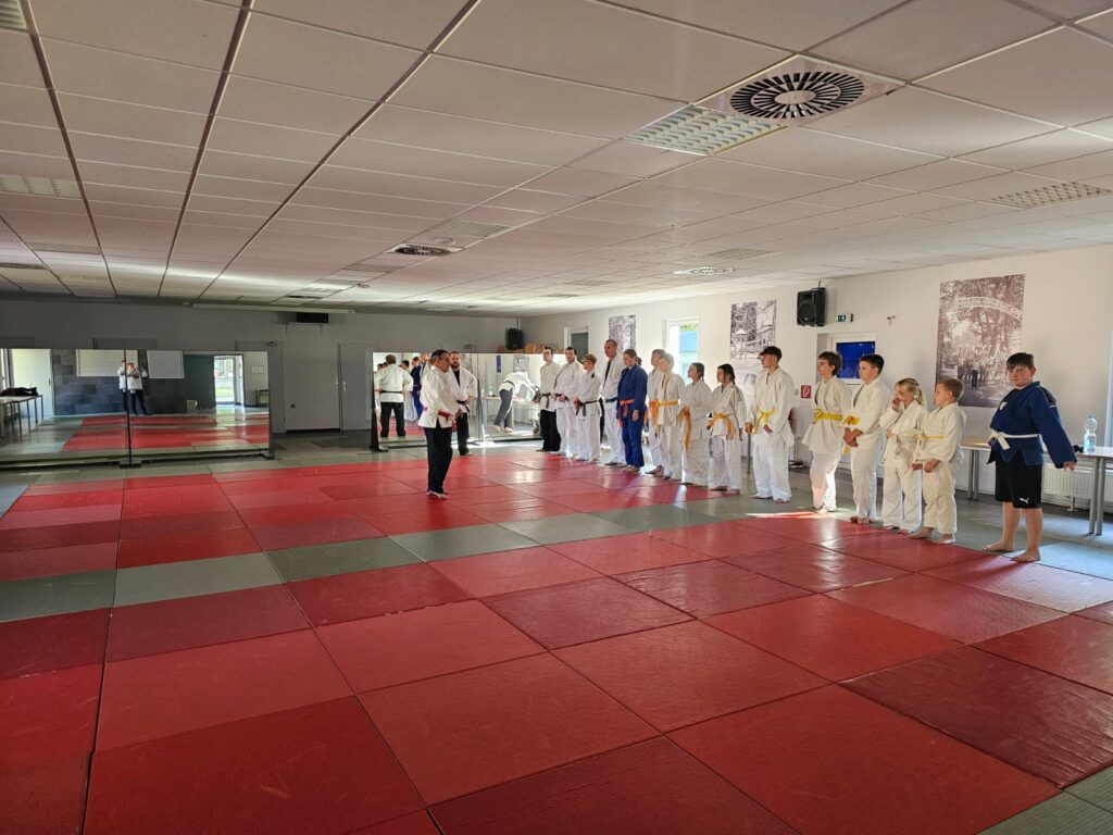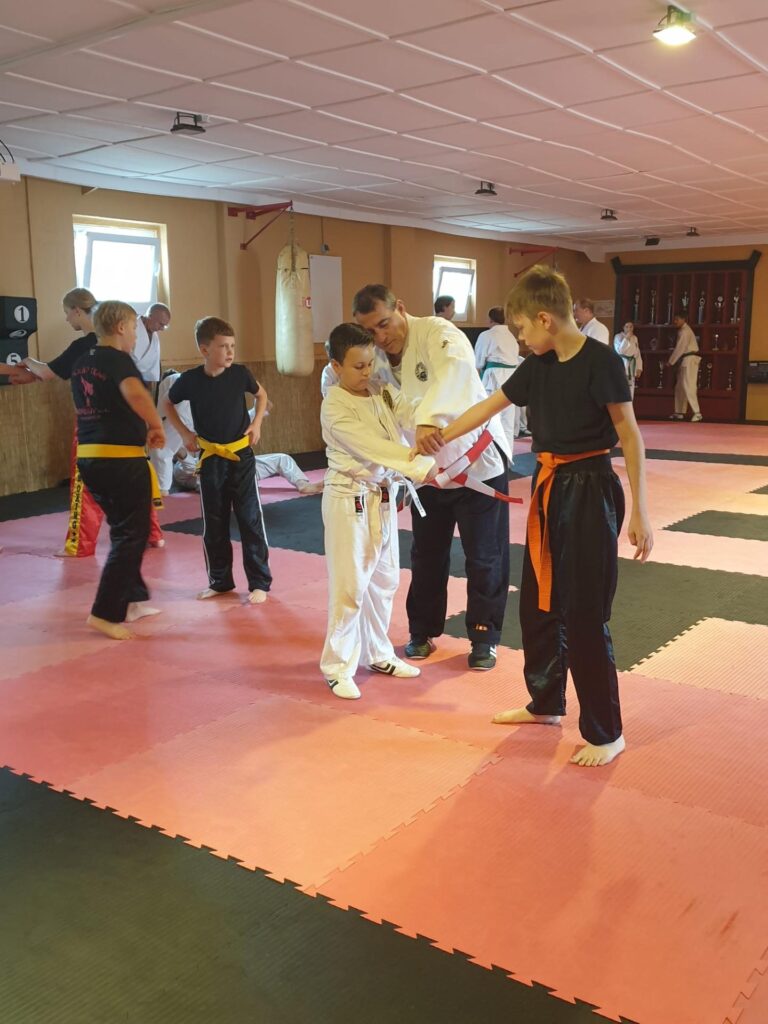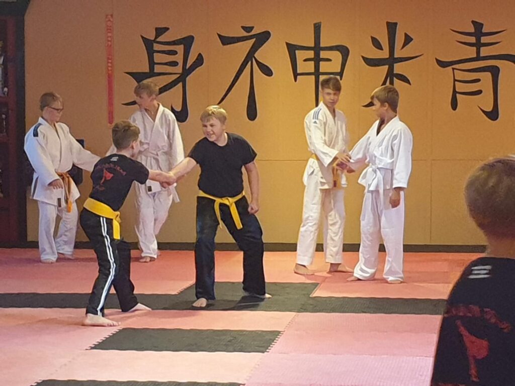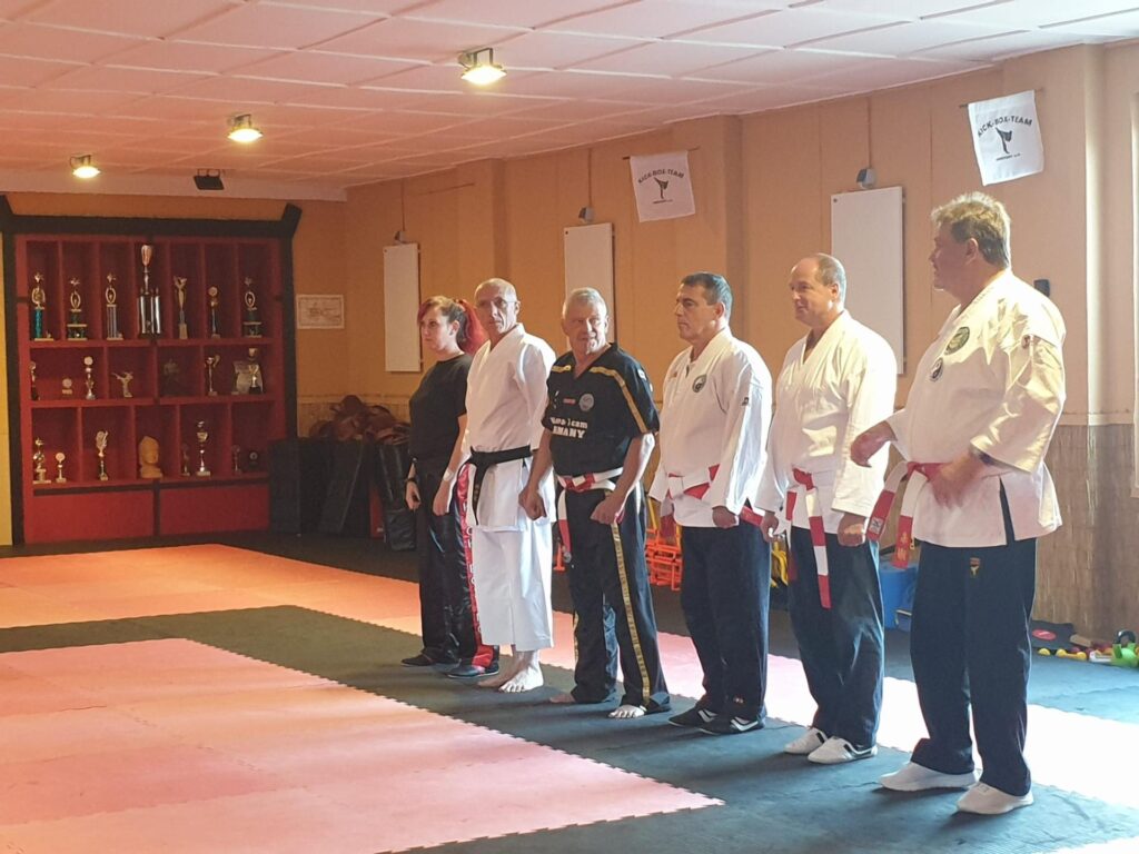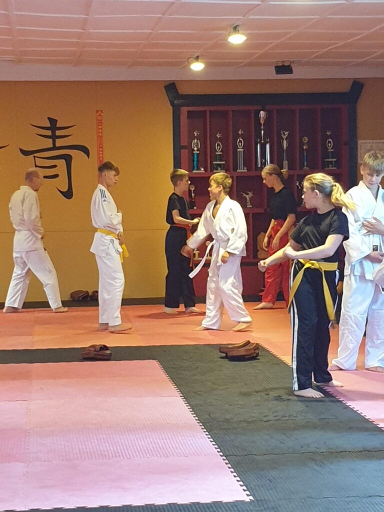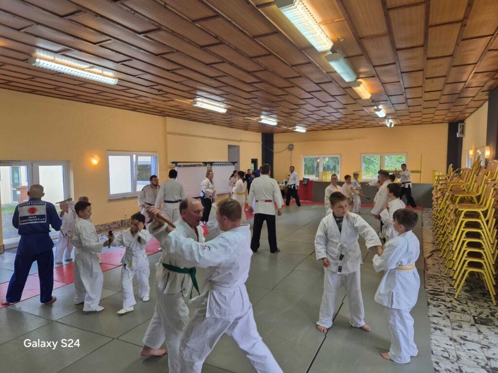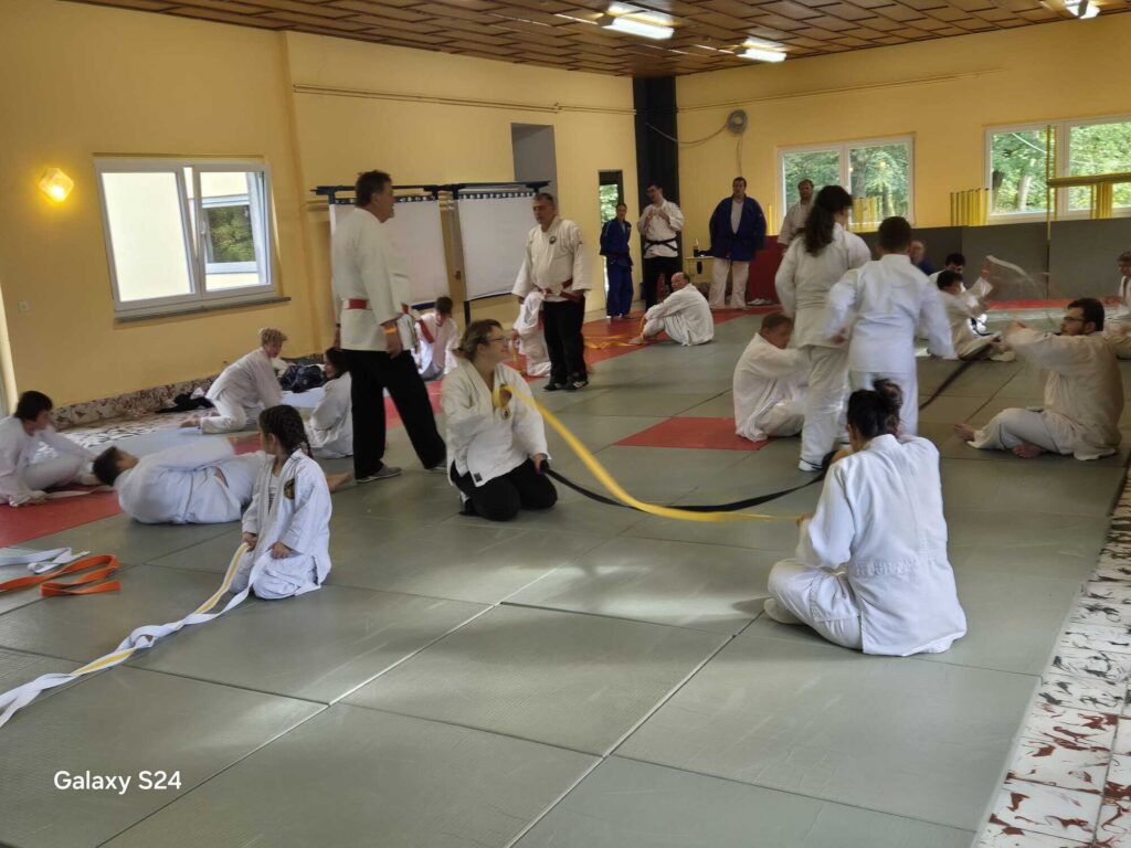 Am Freitagnachmittag starteten wir den ersten Trainingsabschnitt mit realistischer Selbstverteidigung mit Werner Bank aus Artern. Es wurden verschiedene Angriffsvarianten mit und ohne Waffen vorgestellt. Im Anschluss konnten 2 Teilnehmer die Prüfung zum nächsthöheren Gürtel ablegen, Benjamin Weiland legte mit Bravur den braunen Gürtel und Steffi Georgy konnte mit guten bis sehr guten Leistungen den 3. Dan (Meistergürtel) bestehen.