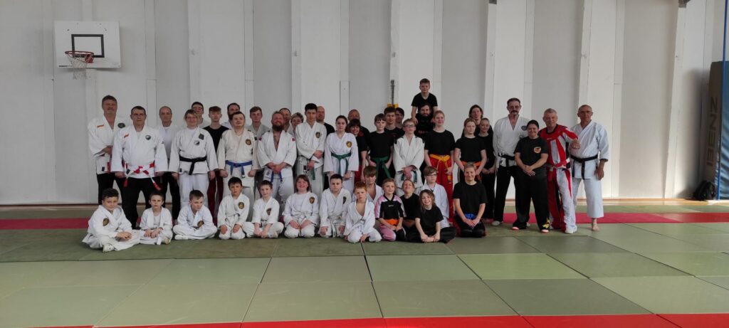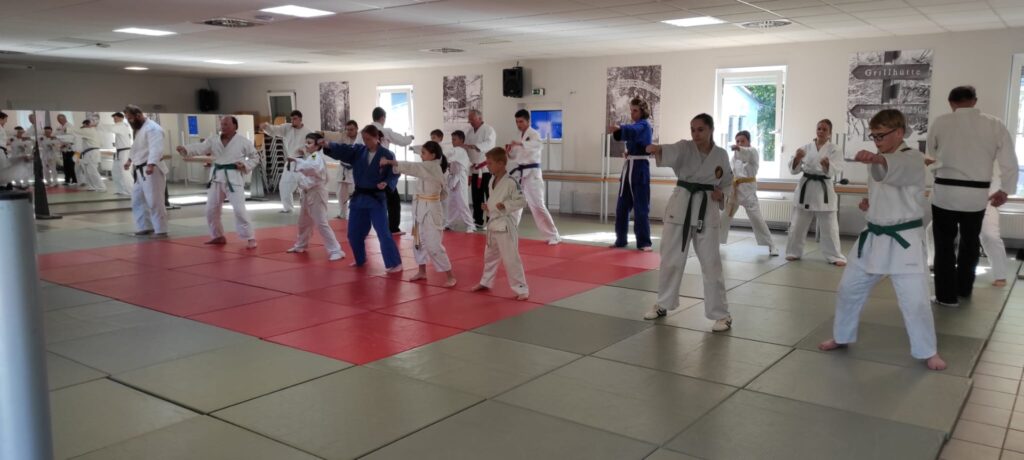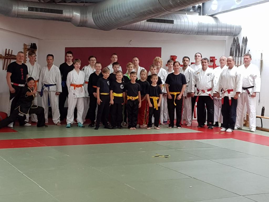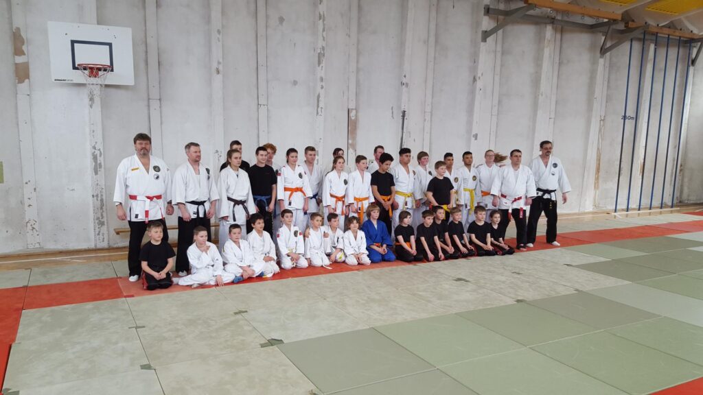 Angekommen in der Kampfkunstschule Artern, wurden die Teilnehmer/innen und Trainer aus den Vereinen Erfurt (Michael Junk}, Arnstadt (Uwe Behringer), Nordhausen (Thomas Kohler), Leinefelde (Joachim Retzek) herzlich von Werner Bank (Großmeister aus Artern) begrüßt. Alles war wie immer perfekt vorbereitet; dann hieß es ,Umziehen” und ,Aufstellung” auf der Matte. Nach der Begrüßung durch den Präsidenten Thomas Köhler, begann pünktlich um 10 Uhr dieser Landeslehrgang.