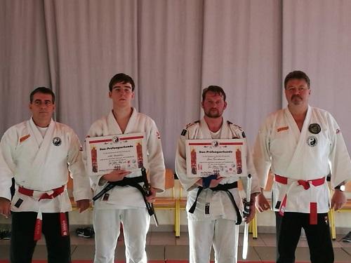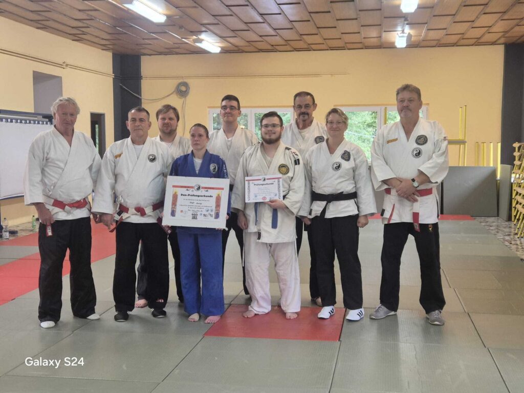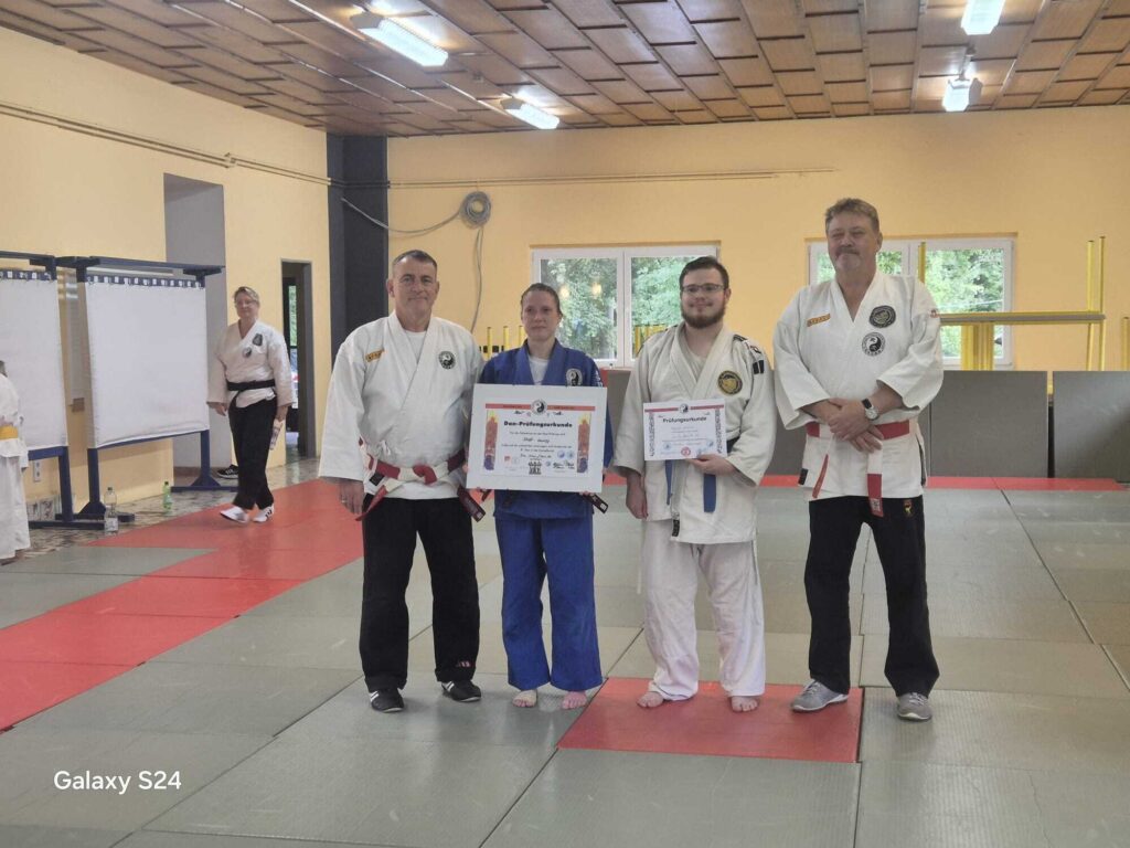 Auch gab es noch einen weiteren Höhepunkt. Uwe Müller aus Artern hat seine technische Prüfung zum Kampfkunstmeister im Jiu Jitsu /Qin Na erfolgreich abgelegt. Nach 1 ½ Stunden harter „Arbeit“ in 15 Prüfungsfächern, war es dann geschafft, er hat die Prüfung zum 1.Dan ( Schwarzer Gürtel ) bestanden. Wir bedanken uns bei Herrn Dr, Krauspe ( IBKM –Gruppe ) für die freundliche Unterstützung und freuen uns schon auf die nächste Auflage in den Herbstferien 2013.
