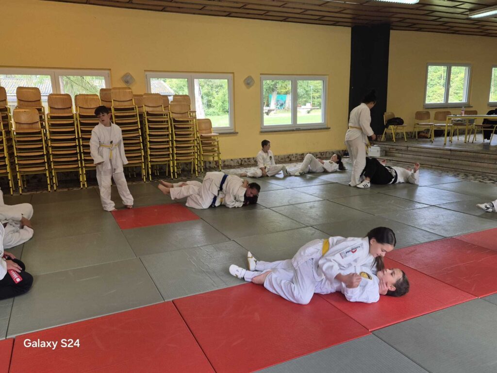 Am Samstag war das Trainingsprogramm ebenfalls sehr anspruchsvoll, im 2. Teil stellte Thomas Köhler aus Nordhausen, verschiedene Wurftechniken in Bezug zu realistischen Angriffen und ebenfalls verschiedene Möglichkeiten von Verteidigungsvarianten in der Bodenlage.