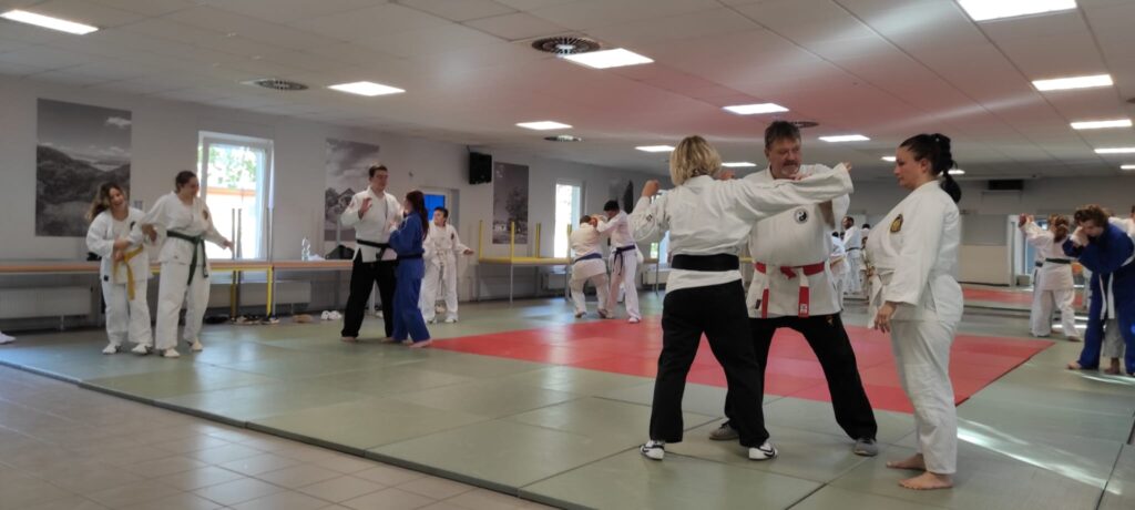 Im Lehrgang wurden die Themen: Waffenabwehr und Wurftechniken in der realistischen Selbstverteidigung bearbeitet.